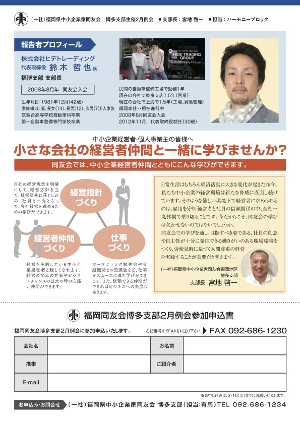 ■報告者:株式会社ヒデトレーディング 代表取締役社長 鈴木 哲也 氏(福博支部)